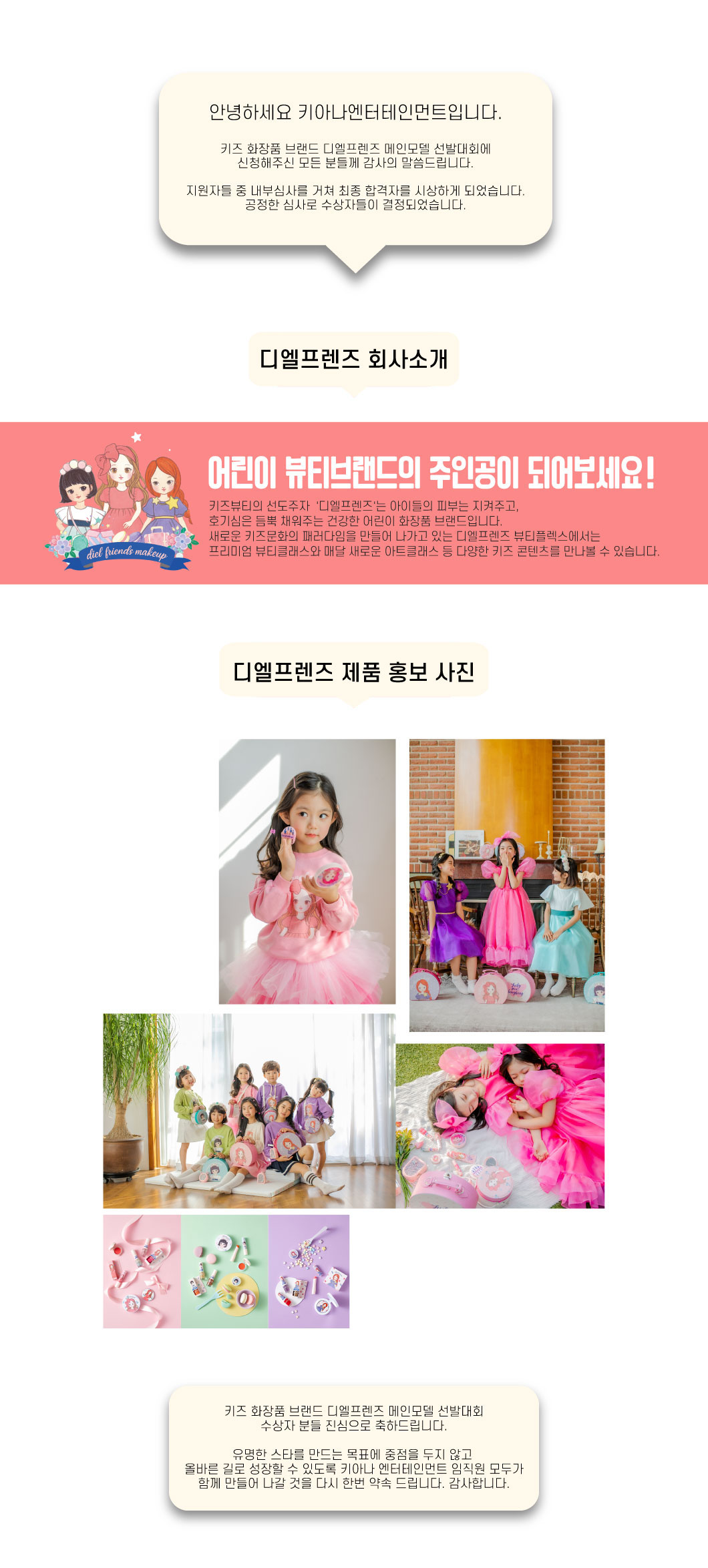 키즈 화장품 디엘프렌즈 대표모델 선발대회