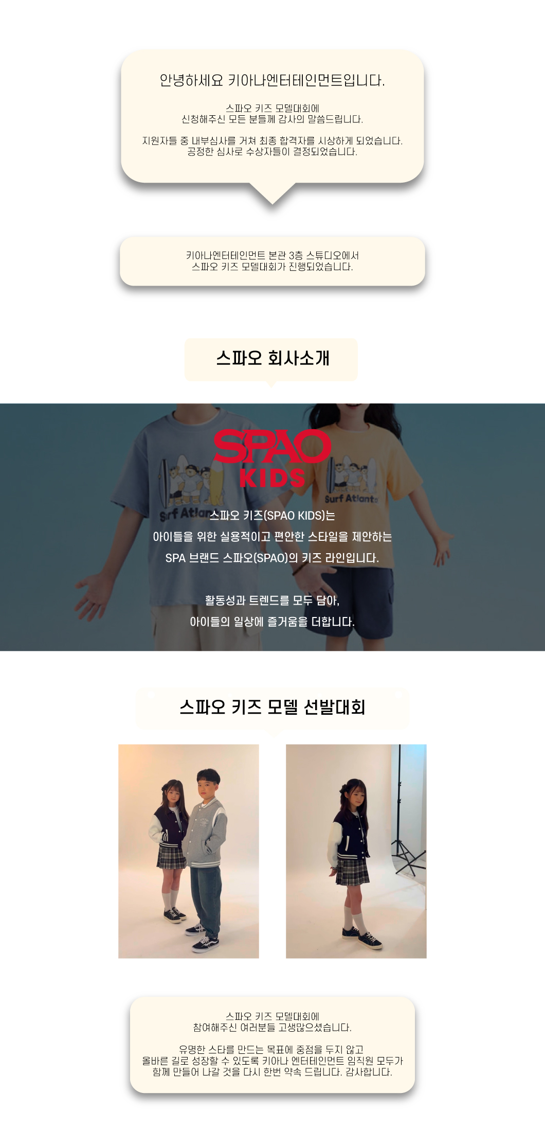 스파오 키즈 모델대회